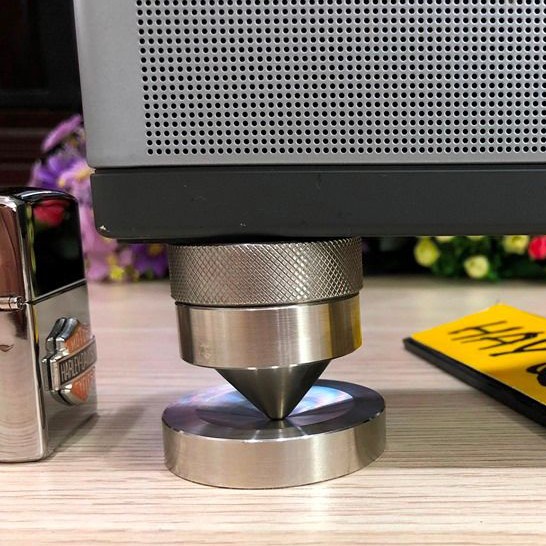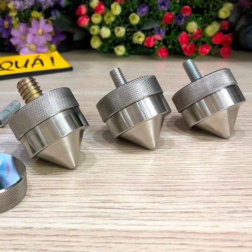 - Shop không có chân đinh chất liệu khác vì thép và Inox 304 đạt được độ bền bề mặt và nhất là độ cứng đinh nhọn. Yếu tố cần thiết để triệt rung cộng hưởng mặt đất và sóng giao động âm thanh phòng nghe ...