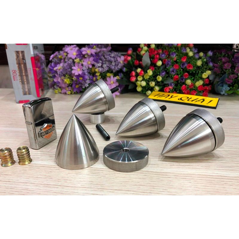 - Shop không có chân đinh chất liệu khác vì thép và Inox 304 đạt được độ bền bề mặt và nhất là độ cứng đinh nhọn. Yếu tố cần thiết để triệt rung cộng hưởng mặt đất và sóng giao động âm thanh phòng nghe ...
