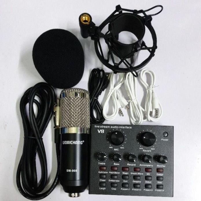 Thiết Bị Âm Thanh > Micro thu âm || [Mã ELHACE giảm 4% đơn 300K] ComBo Đủ Bộ Soundcar V8 - Mic BM 900 - Giá Kẹp - Màng lọc - Tặng Tai Nghe Kiểm Âm 2020Còn hàng