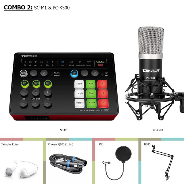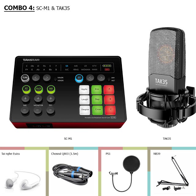 - Các gói combo với Soundcard Takstar SC-M1 và các mã micro của Takstar với nhiều tầm giá, phù hợp với nhu cầu của nhiều nhóm người dùng khác nhau.