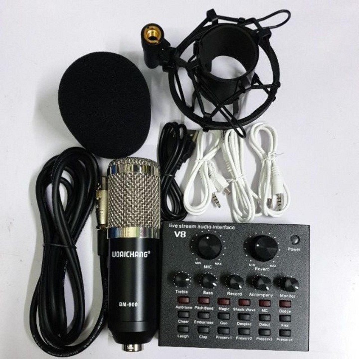 Thiết Bị Âm Thanh > Micro thu âm || [Mã ELHACE giảm 4% đơn 300K] ComBo Đủ Bộ Sound car V8 - Mic BM 900 - Giá Kẹp - Màng lọc - Tặng Tai Nghe Kiểm Âm 2020Còn hàng