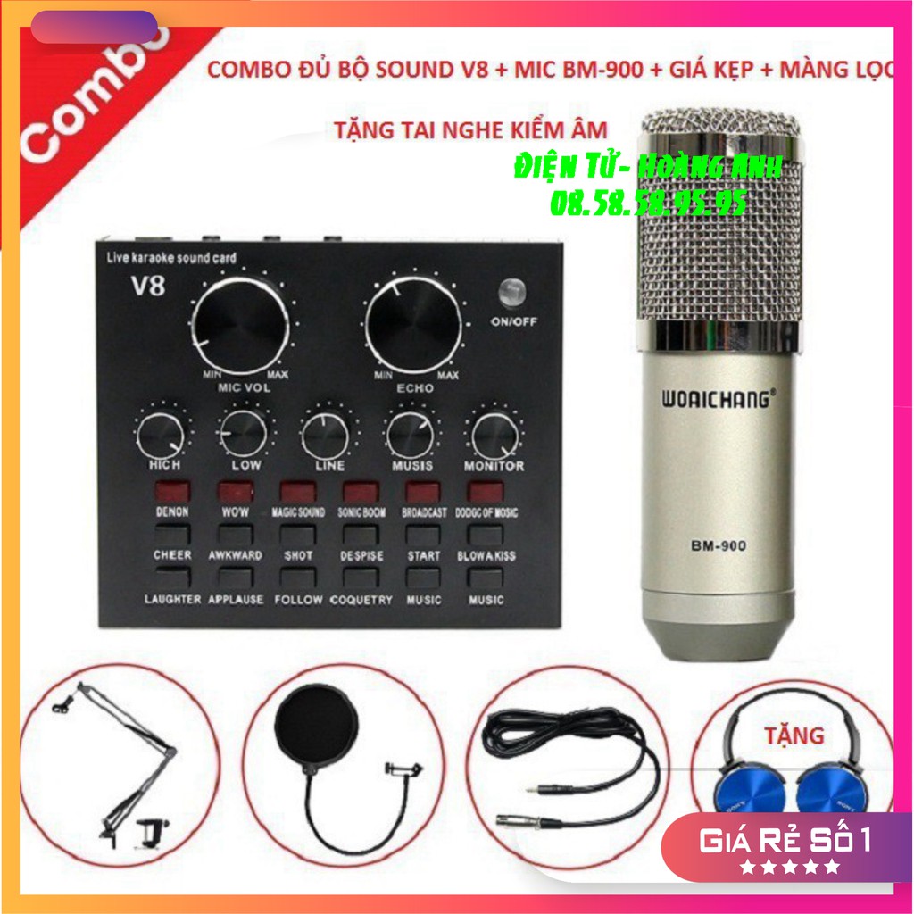 [Mã ELHACE giảm 4% đơn 300K] ComBo Đủ Bộ Sound car V8 - Mic BM 900 - Giá Kẹp - Màng lọc - Tặng Tai Nghe Kiểm Âm 2020