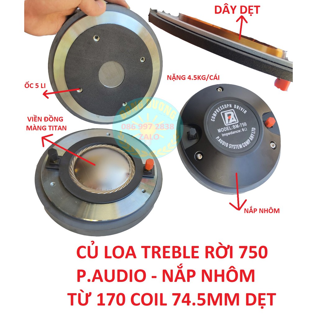 [Mã ELHACE giảm 4% đơn 300K] CỦ TREBLE KÈN 750 PAUDIO COIL DẸT 74,5MM CAO CẤP - GIÁ 01 CÁI - NẮP NHÔM NẶNG 4.5KG
