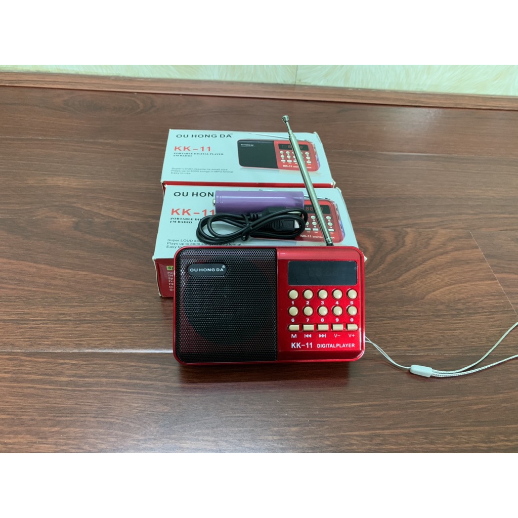 LOA nghe nhạc USB FM với thiết kế rất gọn , sử dụng với 1 pin lithium cho thời gian chơi nhạc lâu hơn.Đài nghe FM KK11 là sản phẩm đang được ưa chuộng.