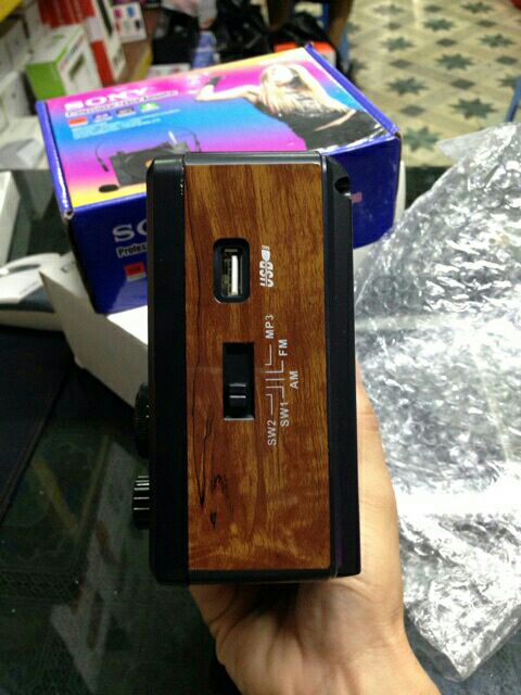 Về mẫu mã bên ngoài thì nhìn qua chúng ta cứ nghĩ đài làm bằng gỗ nhưng thật ra chất liệu vỏ bên ngoài của sản phẩm được làm bằng nhựa , máy có tay xách , có awngten để thu sóng được tốt, một bên là loa bass, bên còn lại là các băng tần ( AM, FM, SW1, SW2) và các dải tần số để dò đài, dò bằng nút vặn như đài cơ thôi nên cũng dễ dùng. bên dưới là các nút : Tuning ( chọn dải tần số), Tone ( tinh chỉnh cho âm thanh nghe tốt hơn), volume ( chỉnh âm lượng lớn nhỏ). Các chức năng cộng thêm của loa như: cổng nghe nhạc MP3 từ USB/ TF Card, cổng cắm sạc, DC BATT ( chế độ dùng pin 1.5V), Mic ....