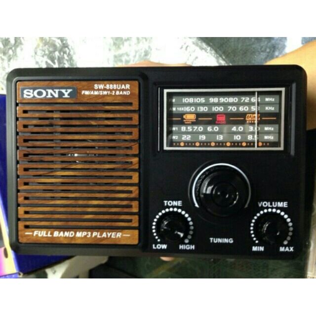 mẫu radio điện tử, thiết bị sử dụng 2 pin 1.5V, ngoài ra bên trong còn tích hợp thêm pin sạc lại nên tha hồ mà sử dụng nhé !, Radio Sony SW888UAR bắt sóng mạnh và nghe được nhiều kênh, không những thế mà sản phẩm này còn có thể dùng để nghe nhạc từ các thiết bị như: USB/ SD với âm thanh cũng khá là tốt, tuy có lớn hơn kích cỡ một chiếc loa nghe nhạc bỏ túi nhưng về chức năng nghe các chường trình trên sóng radio thì mẫu này dùng rất tốt.Thiết kế khá đẹp