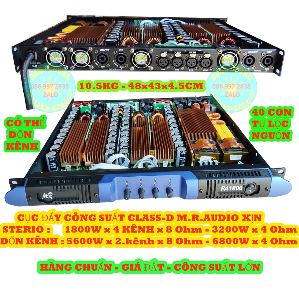 [Mã ELHACE giảm 4% đơn 300K] ĐẨY CÔNG SUẤT CLASS D - M.R.AUDIO R41800 - CÔNG SUẤT 1800 X 4 KÊNH X 8 Ohm