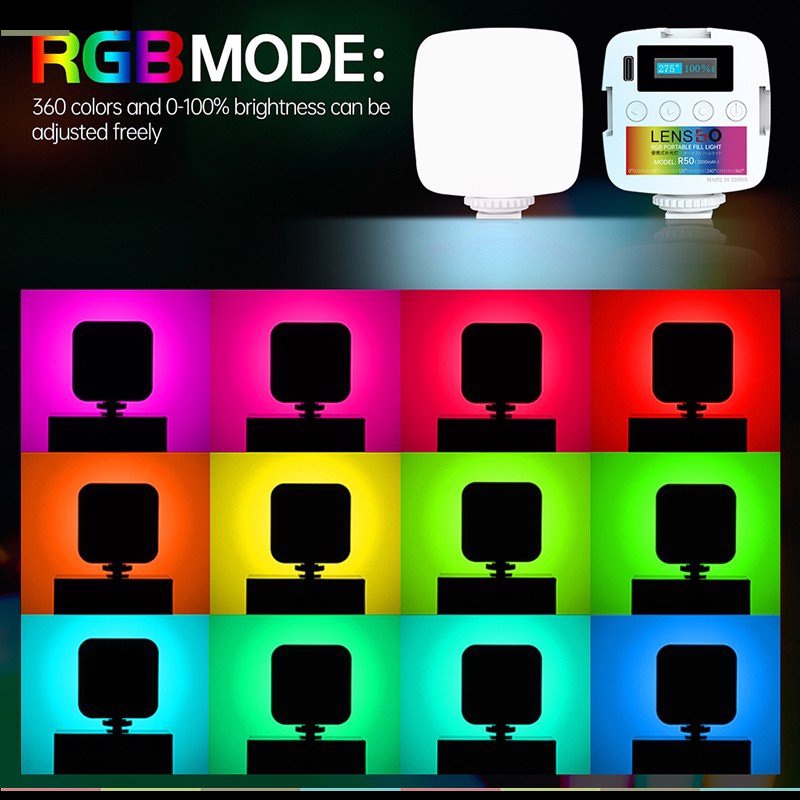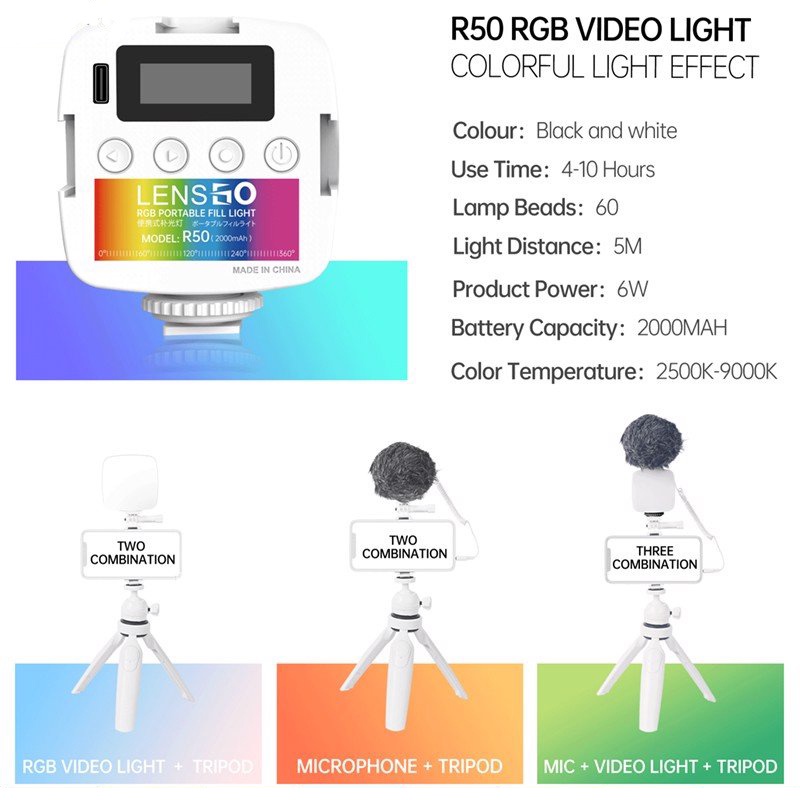 Giới thiệu [Mã ELHACE giảm 4% đơn 300K] Đèn LED Hỗ Trợ Quay Phim, Chụp Ảnh Cho Smartphone, Máy Quay, Máy Ảnh Lensgo R50 RGB