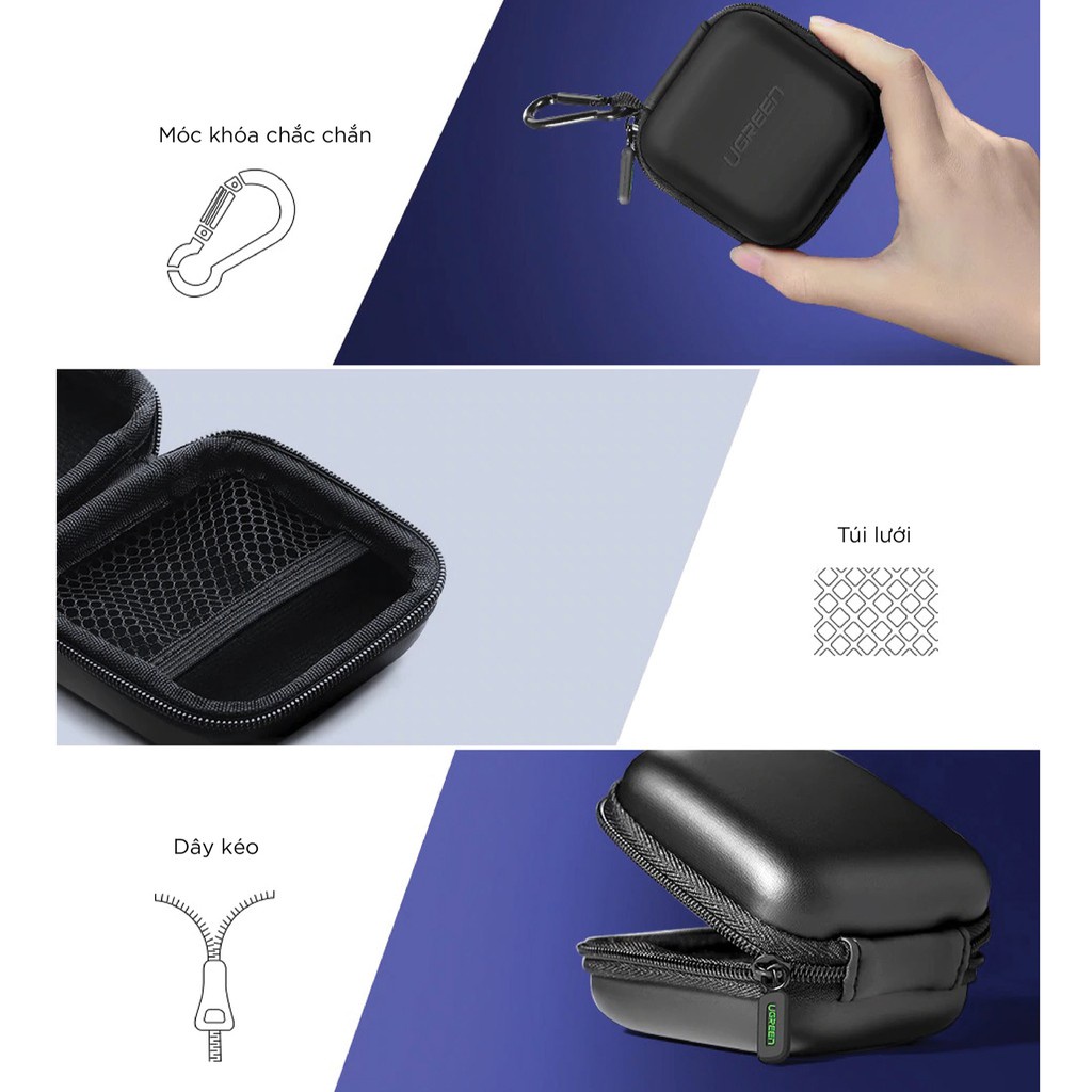 TÊN SẢN PHẨM: Hộp đựng tai nghe thẻ nhớ cáp USB chống sốc chống nước UGREEN 40816THỜI GIAN GIAO HÀNG SIÊU TỐC ĐỘ: