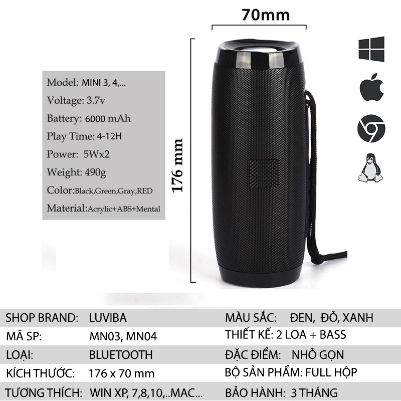 Loa bluetooth mini dễ thương karaoke giá rẻ charge 3 4 LUVIBA MN04LOA BLUETOOTH