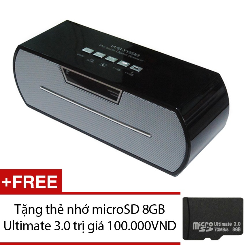 Loa bluetooth WSTER WS-Y69B (Đen) + Tặng 1 thẻ nhớ microSD 8GBLoa Bluetooth mini WS Y69B là 1 chiếc loa di động được thiết kế đẹp và sang trọng, kiểu dáng hình hộp thuôn dài với nhiều màu sắc mạnh mẽ cho bạn lực chọn. Trên đầu loa là tổ hợp phím điều khiển, mặt trước gắn 1 loa và đươc bọc bằng lưới. Chất lương âm thanh stereo hay và mạnh m ẽ, kết nối không dây bằng chuẩn Bluetooth 3.0 tương thích cho tất cả các thiết bị nghe nhìn Bluetooth. Loa Bluetooth WS Y69B thích hợp cho các bạn mang theo đi du lịch, đi chơi, đi làm để giải trí khi nghỉ ngơi hay học tiếng Anh.