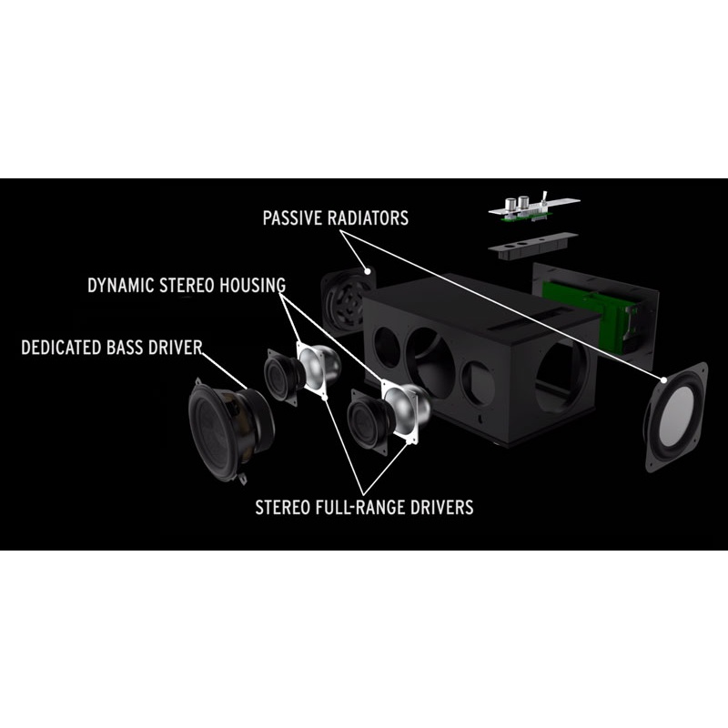- Loa bass: 1 x 13.3cm và 2 x 13.3cm woofer thụ động nằm đối mặt nhau