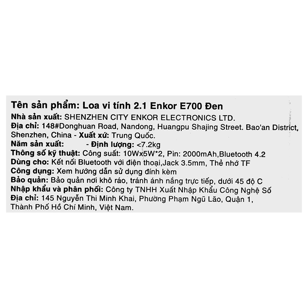 Thiết Bị Âm Thanh > Dàn âm thanh > Loa || [Mã ELHACE giảm 4% đơn 300K] Loa vi tính Bluetooth Enkor E700 - 2.1 20W kèm remote - Chính hãng BH 12 thángCòn hàng