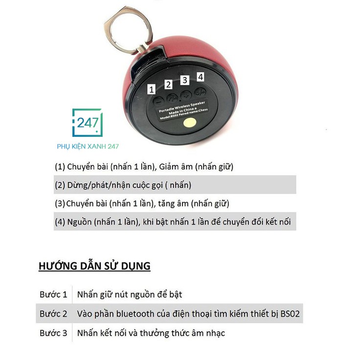 [Mã ELHACE giảm 4% đơn 300K] Loa bluetooth mini BS02 ⚡️CÓ MÓC TREO⚡️ nhỏ gọn, tiện lợi, hỗ trợ thẻ nhớ