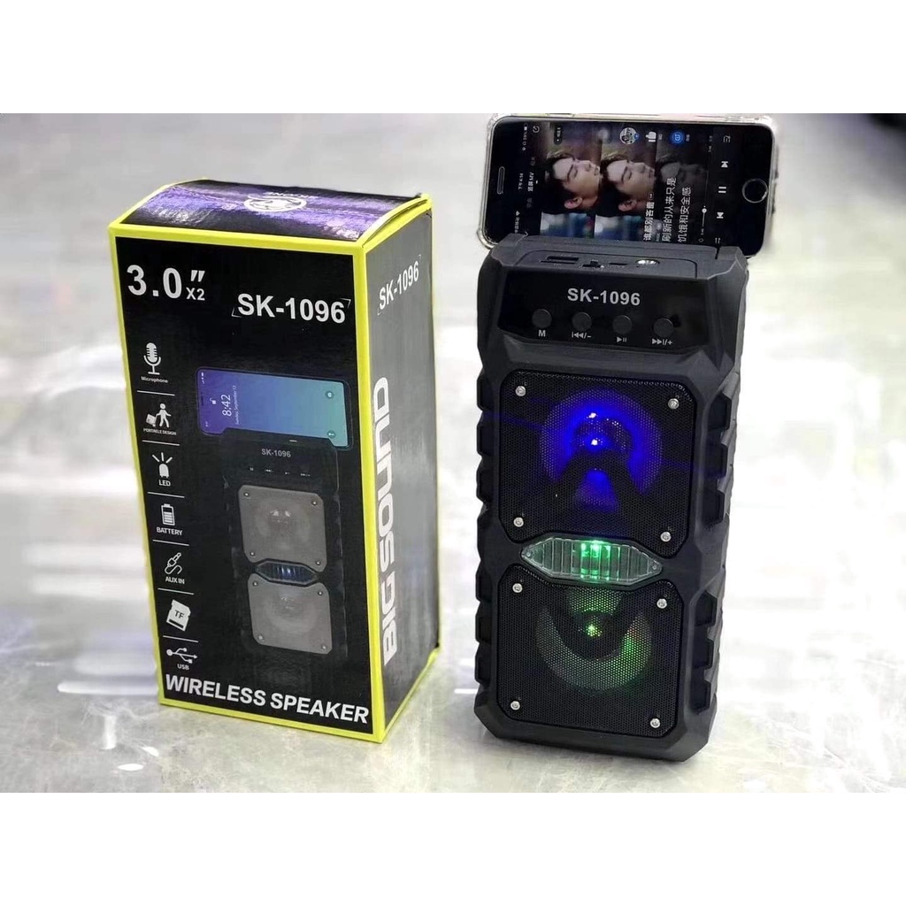 Loa bluetooth karaoke mini kèm mic SK-1096 cao cấp giá rẻLoa di động SK-1096 Bluetooth Loa siêu trầm Máy nghe nhạc MP3 USB Radio