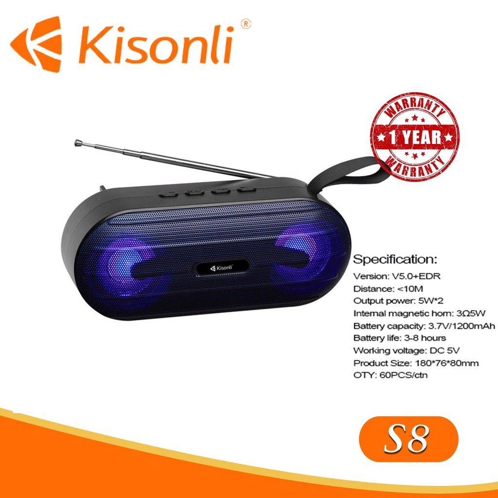 Thiết Bị Âm Thanh > Dàn âm thanh > Loa || [Mã ELHACE giảm 4% đơn 300K] Loa Kisonli Bluetooth S8Còn hàng