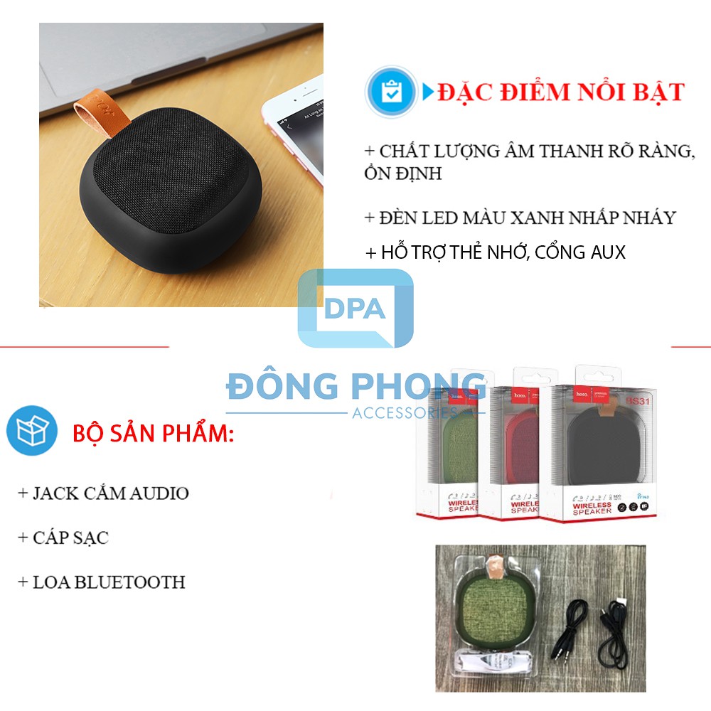 - Sản phẩm hiện đang được phân phối tại ĐÔNG PHONG ACCESSORIES. Bên cạnh Loa Bluetooth Mini Hoco BS31 Chính Hãng tuyệt vời trên, chúng tôi còn cung ứng rất nhiều phụ kiện chính hãng khác.