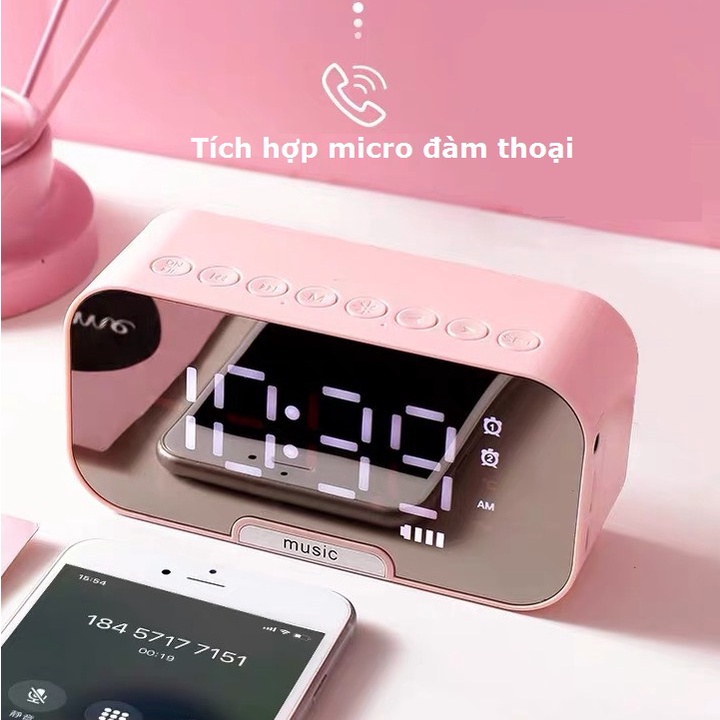 Loa bluetooth kiêm đồng hồ báo thức nghe đài FM màn hình tráng gương hiển thị đèn led G10Loa đồng hồ không dây kết nối bluetooth