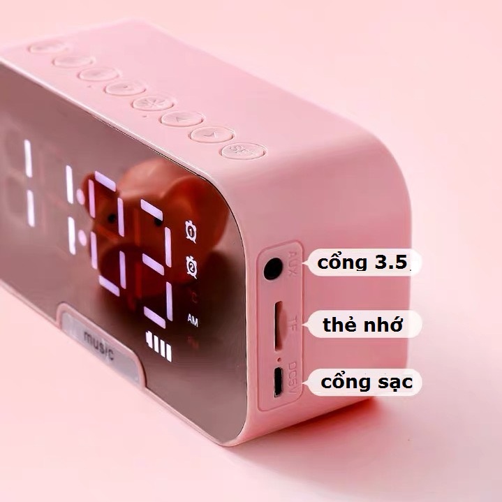 + Âm thanh từ loa to rõ, chắc âm, bass lớn. Khi sở hữu sản phẩm này vừa có một chiếc loa nhỏ gọn, một chiếc đồng hồ hiển thị thời gian, nhiệt độ và cả một chiếc gương để trang điểm.