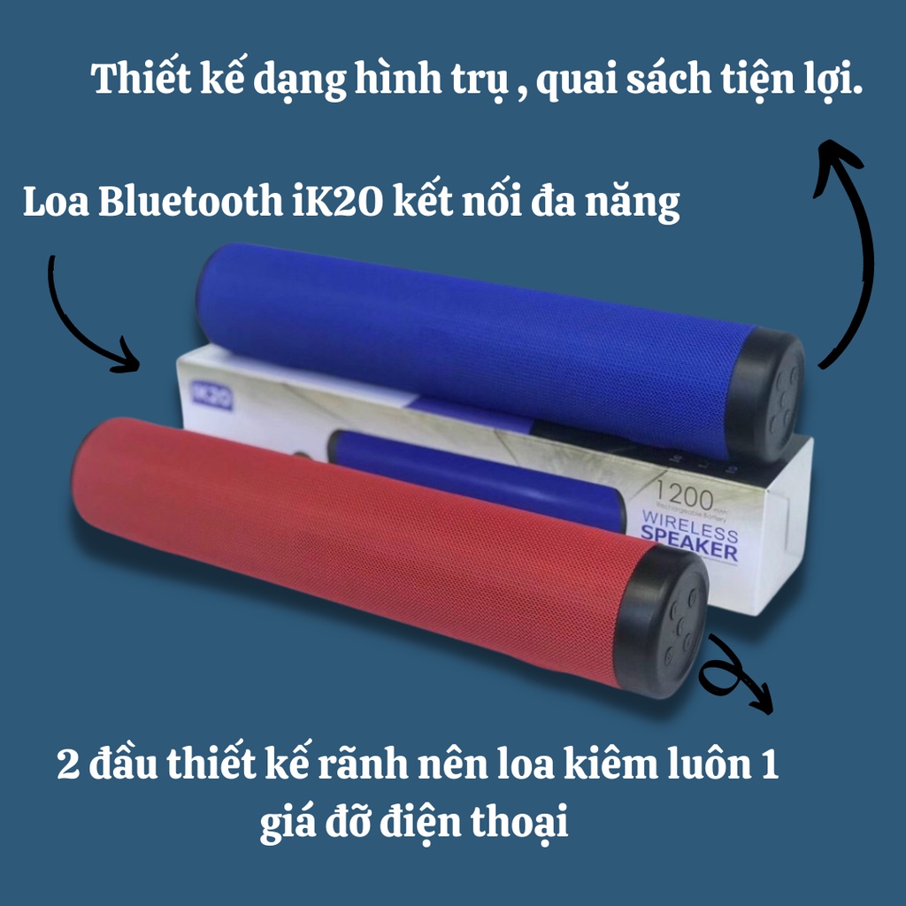 - Loa Bluetooth Siêu Bass Không Dây iK20 kết nối đa năng, có thể dùng usb, thẻ nhớ tf, bluetooth, nghe đài fm, cổng aux 3.5