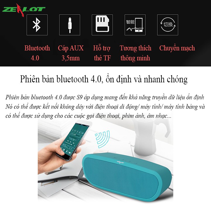 Giới thiệu [Mã ELHACE giảm 4% đơn 300K] Loa bluetooth mini Zealot S9 - Hàng chính hãng - Bảo hàng 12 tháng