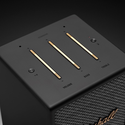 - Điểm khác biệt lớn nhất của Marshall Uxbridge Voice chính là dàn núm điều khiển cổ điển trên các dòng loa thế hệ trước đã được thay đổi bằng các thanh bấm dài. Với thiết kế trượt dài trên chiều sâu của loa cực kỳ bắt mắt. Người dùng có thể tăng/giảm âm lượng, bass, treble chỉ với 1 thao tác, rất dễ dàng.