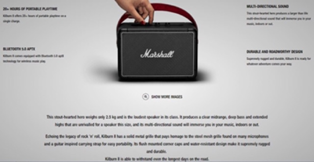 Thiết Bị Âm Thanh > Dàn âm thanh > Loa || [Mã 44ELSALE1 giảm 5% đơn 3TR] Loa Bluetooth Marshall Kilburn 2 New - Chính Hãng (Bảo Hành 12T)Còn hàng