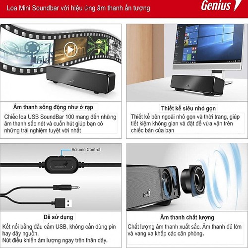 Giới thiệu [Mã ELHACE giảm 4% đơn 300K] Loa Genius mini Soundbar 100 – USB