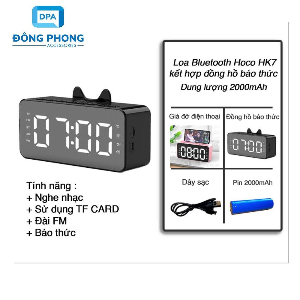Giới thiệu [Mã ELHACE giảm 4% đơn 300K] Loa Bluetooth V5.0 Hoco HK7 Chính Hãng Có Đồng Hồ Báo Thức