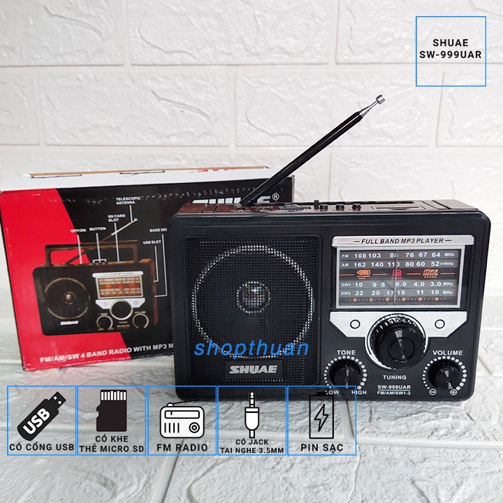 Loa nghe nhạc Shuae SW-999UAR nghe thẻ nhớ, USB, AM, FM Radio có antenPHÂN LOẠI CHI TIẾT