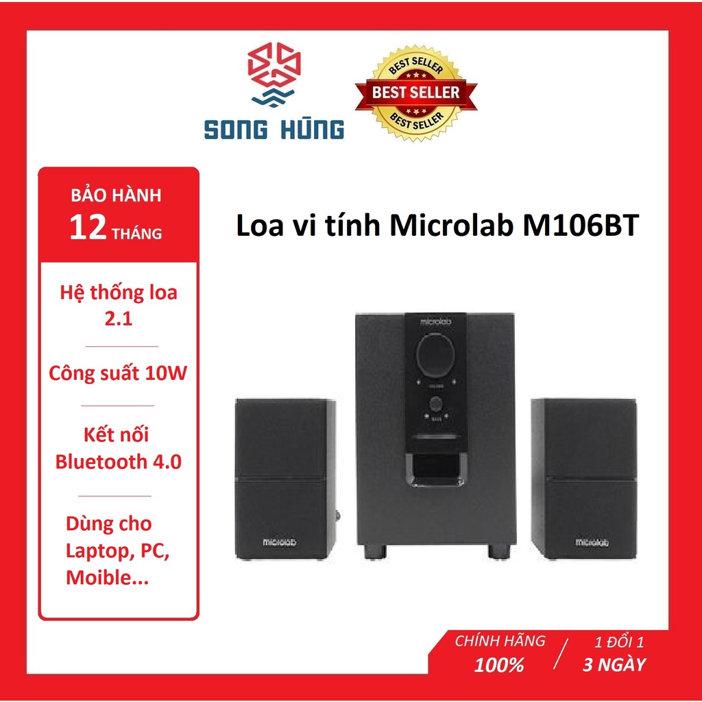 Thiết Bị Âm Thanh > Dàn âm thanh > Loa || [Mã ELHACE giảm 4% đơn 300K] Loa Bluetooth Microlab 2.1 M106 BT Đen, loa máy tính giá rẻ chính hãng bảo hành 12 thángCòn hàng