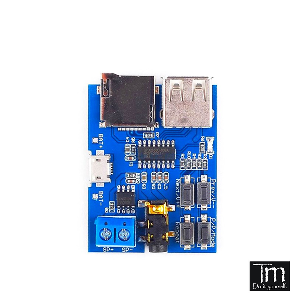🌈 Mạch phát MP3 tích hợp Amply 2W có khả năng giải mã âm thanh MP3 trên USB hoặc thẻ nhớ Micro SD Card. Mạch với âm thanh ngõ ra chuẩn 3.5 li cho tai nghe tích hợp thêm ngõ ra công suất 2W kết nối trực tiếp đến loa ngoài (đề nghị khoảng 4Ω 3W). Nguồn cấp trực tiếp từ cổng Micro USB qua đó có thể dùng trực tiếp dây sạc cho điện thoại để dùng hoặc cục sạc dự phòng cung cấp nguồn cho bo, ngoài ra có thể dùng pin lithium 3.7V,...1️⃣1️⃣1️⃣ --THÔNG SỐ KỸ THUẬT-- 1️⃣1️⃣1️⃣