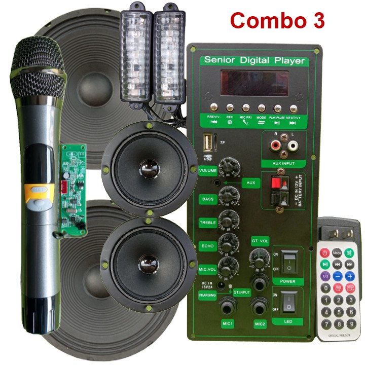 - Có hổ trợ Bluetooth, ngõ vào AUX hoặc Jack AV. Đọc thẻ nhớ hoặc USB. Bắt được FM, có chế ghi âm. Điều chỉnh các Phím trên mạch hoặc remote điều khiển kèm theo.