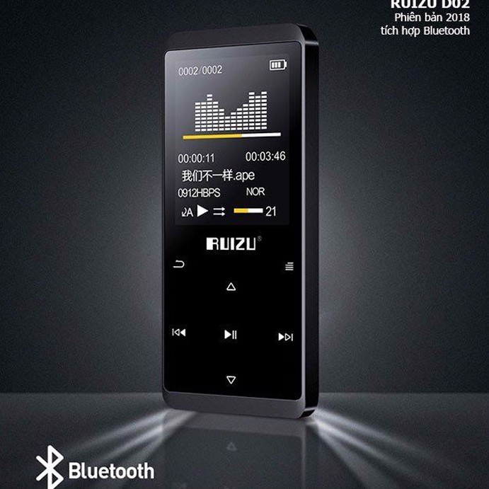 - Máy nghe nhạc mp3 Ruizu D02 được trang bị Bluetooth 4.0 với chip DAC chuyển tải âm thanh FLAC không bị suy hao tín hiệu, không làm giảm chất lượng nhạc.