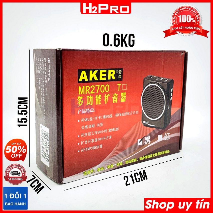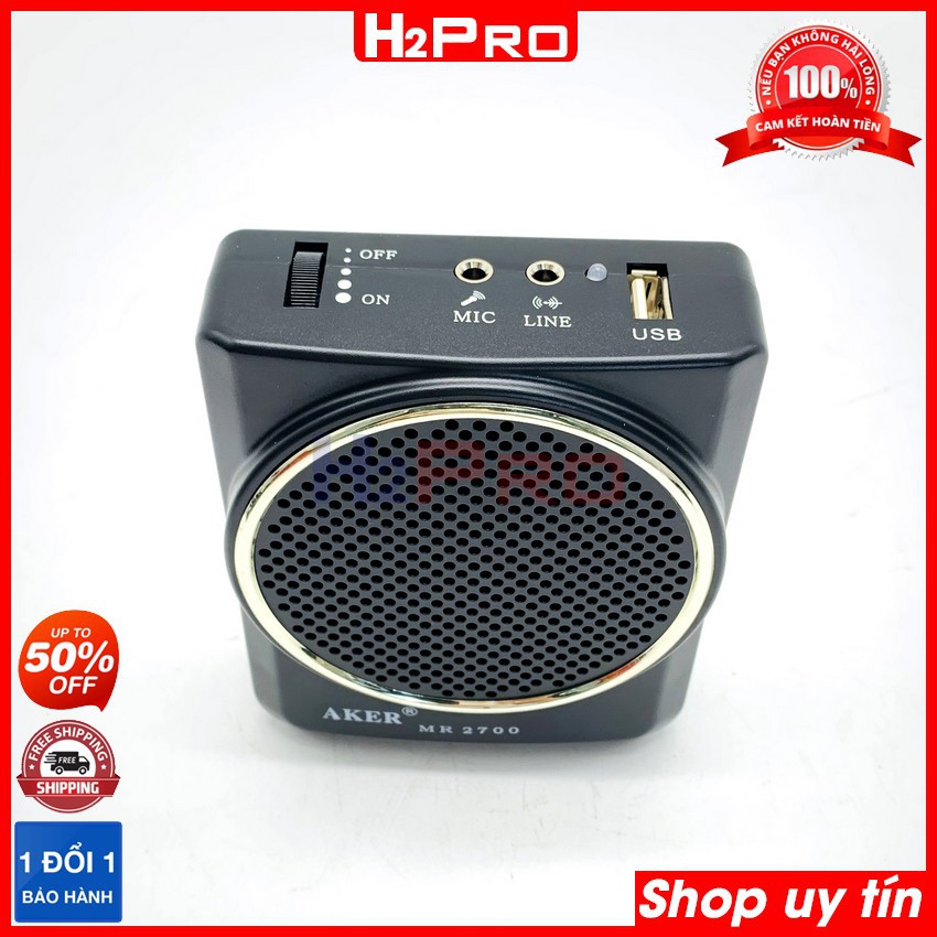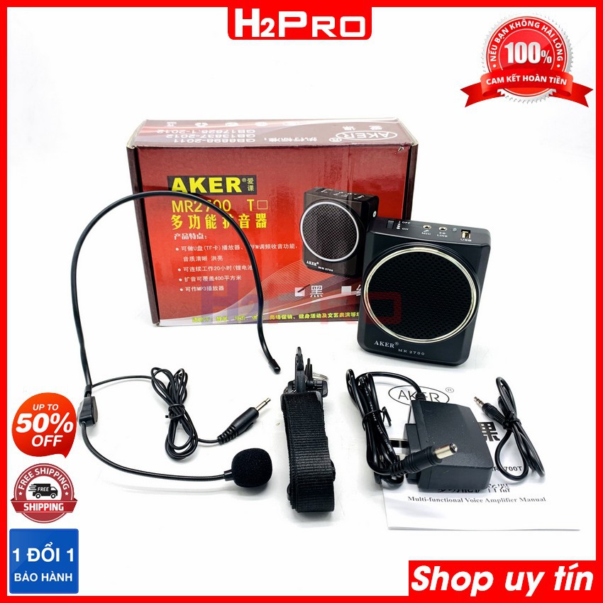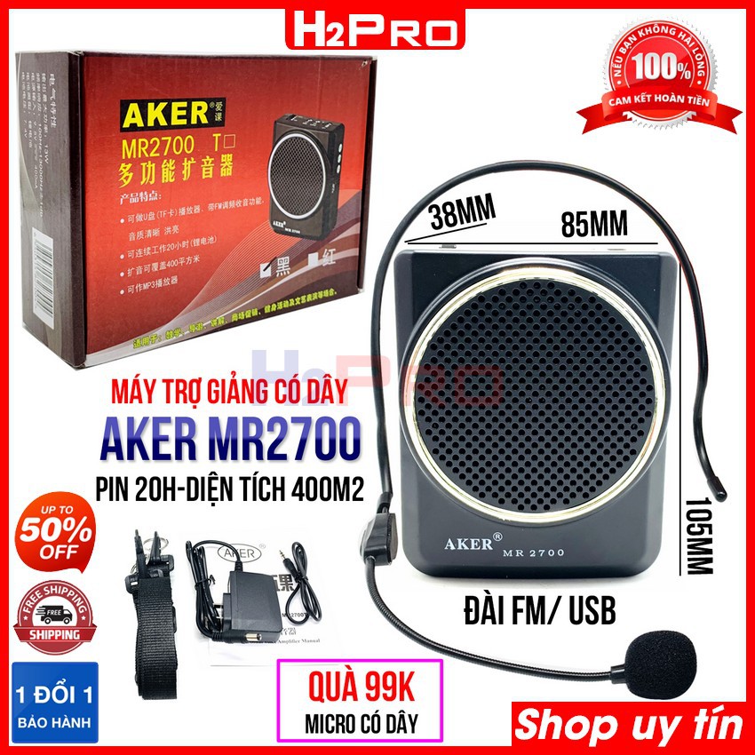 Máy trợ giảng có dây AKER MR2700 H2Pro 12W chính hãng, máy trợ giảng AKER MR2700 đa năng có đài FM, USB ( tặng 1 micro có dây 99k )Máy trợ giảng có dây Aker Mr - 2700 được thiết kế nhỏ gọn, đẹp mắt, âm thanh rõ ràng, trung thực sử dụng, thuận tiện khi mang theo qua nhiều lớp học. Máy trợ giảng Aker Mr 2700 thích hợp cho giáo viên, diễn giả, hướng dẫn viên du lịch ở những phòng học khoảng 100m2 tương đương với 50-60 người . Sản phẩm đang được Thế giới công nghệ H2Pro phân phối và bán lẻ, giao hàng toàn quốc.