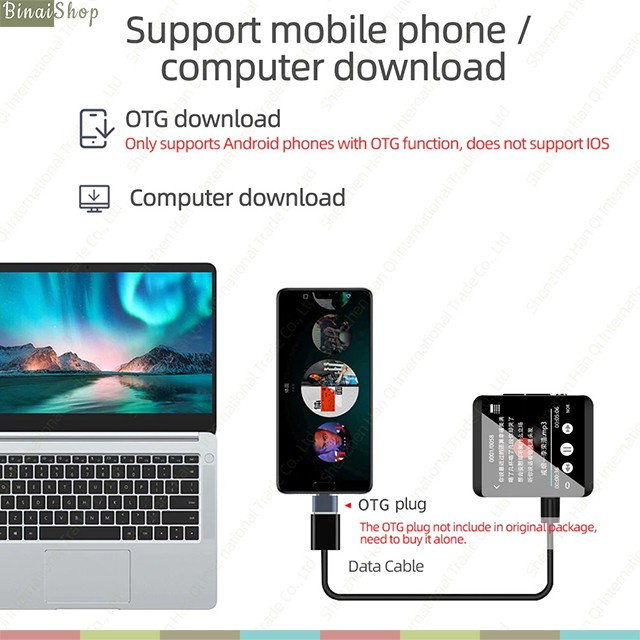 - Hỗ trợ kết nối với các dòng smartphone qua cổng OTG Android tặng kèm, không hỗ trợ iOS.