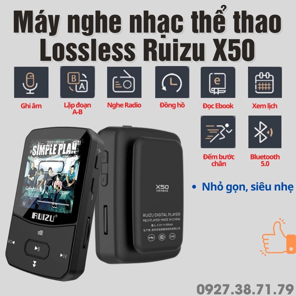 [CÓ SẴN] Máy nghe nhạc thể thao Bluetooth 5.0 RUIZU X50 Lossless - Bộ nhớ 8Gb - Có kẹp áo - Siêu nhỏ gọn và cực kỳ nhẹ