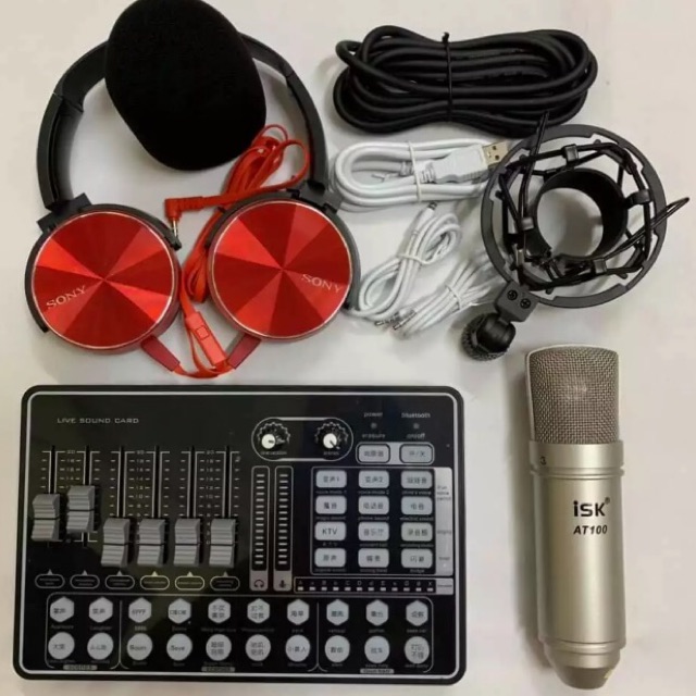 [Mã ELHACE giảm 4% đơn 300K] (Mic loại 1)Combo hát livestream thu âm mic ISK AT-100 + sound card H9 + tặng kèm tai nghe