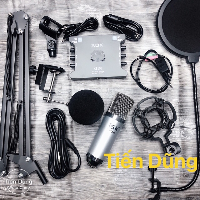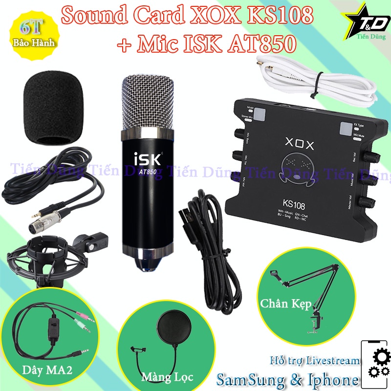 Mic thu âm ISK AT850 Sound card ks108 bản tiếng anh đi dây livestream ma2 chân màng- Bộ sound card XOX KS108 tiếng anh.🍀 TRỌN BỘ MIC THU ÂM ISK AT850