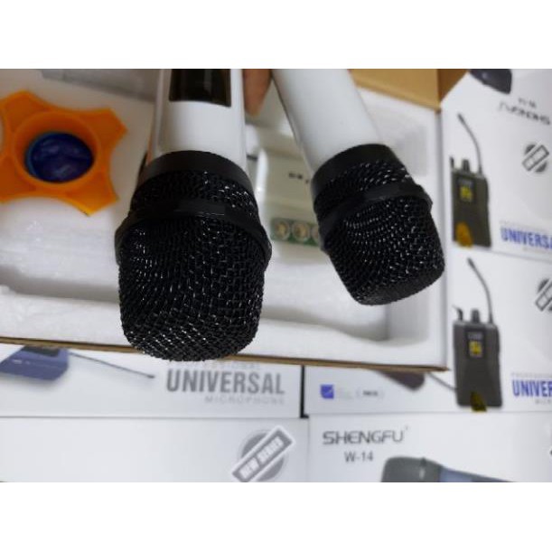 Mic karaoke đa năng Shengfu W-10 (2 mic) W8 (1 mic) M3-M4Dùng cho các loại đầu karaoke...đặc biệt thích hợp cho các loại loa kéo di động do không cần cắm nguồn điện trực tiếp mà xài pin sạc. Âm thanh xuất hay, ấm,...