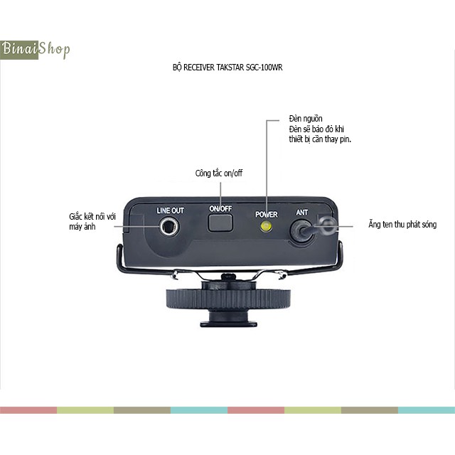 - Bộ receiver có khớp nối tương thích với hầu hết các loại máy ảnh, máy quay.