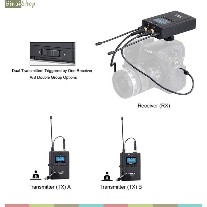 Thiết Bị Âm Thanh > Micro thu âm || [Mã ELHACE giảm 4% đơn 300K] Micro không dây cho máy ảnh, máy quay Comica CVM-WM200A (2 transmitter)Còn hàng
