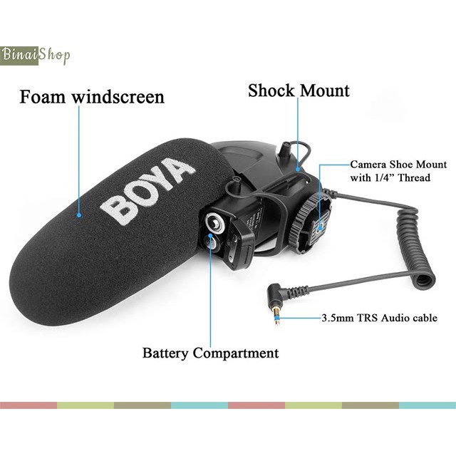 micro shotgun, micro máy ảnh, micro supercardioid, micro máy quay, micro shotgun boya, boya by-bm3030.
