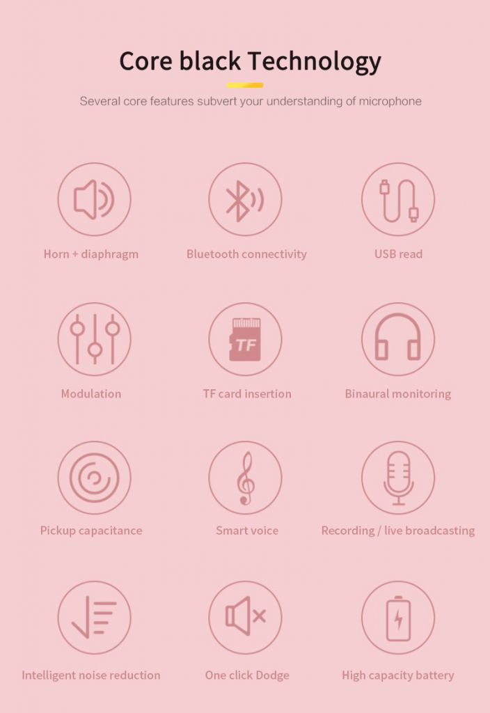 2. Giảm tiếng ồn thông minh, tạo ra môi trường âm thanh sống động KTV tuyệt đẹp và độ vang dội tuyệt vời. Đó là một chiếc micrô ma thuật để thay đổi giọng nói. Có năm chế độ âm thanh: âm thanh gốc, giọng trẻ em, giọng nữ, giọng nam. Điều này có thể thú vị hơn.