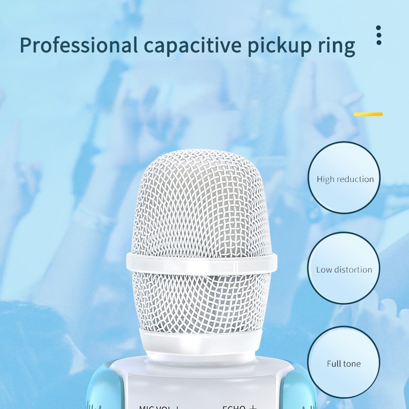 1. Micro không dây cầm tay di động có thể được sử dụng như micro, loa Bluetooth, loa đài, máy ghi âm. Đầu KTV mini tại nhà để chơi nhạc và hát bất cứ lúc nào.