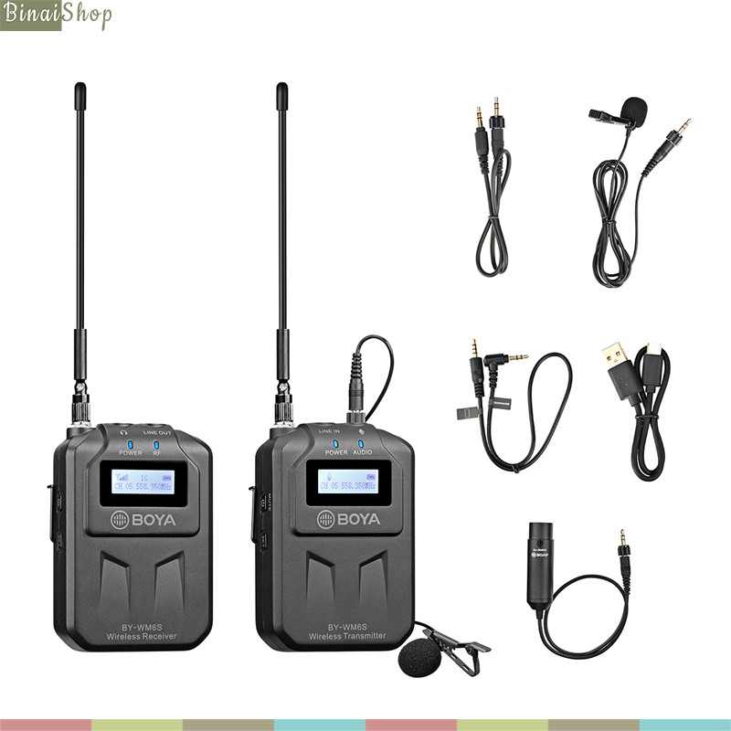 [Mã ELHACE giảm 4% đơn 300K] Micro Thu Âm Không Dây UHF Cho Điện Thoại, Máy Ảnh, Máy Quay Boya BY-WM6S