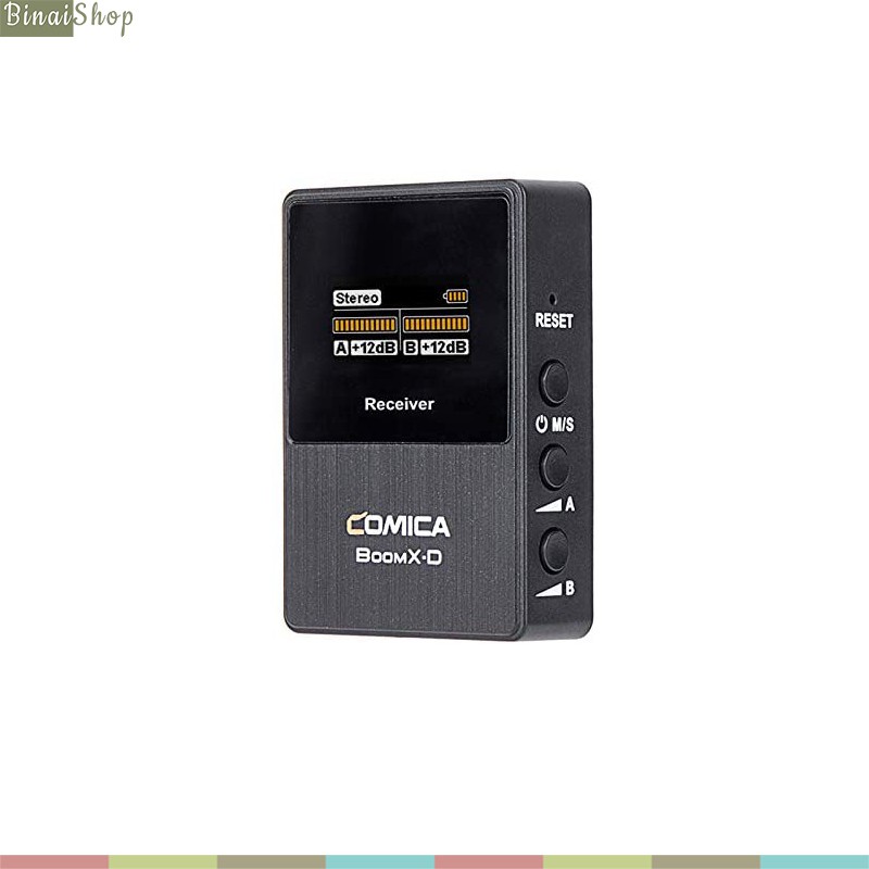Comica BoomX-D là bộ micro không dây sử dụng sóng 2.4G chuyên dùng cho máy ảnh, máy quay phim, smartphone hoặc máy tính bảng, BoomX-D cho cự ly thu âm lên tới 50m và sóng tín hiệu ổn định, độ trễ thấp dưới 20ms. Có 2 lựa chọn cho bộ sản phẩm: BoomX-D1 và BoomX-D2.