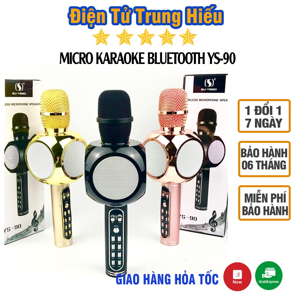 Giới thiệu [Mã ELHACE giảm 4% đơn 300K] Micro Karaoke Bluetooth YS-90 Không Dây Kèm Loa Hỗ Trợ Thu Âm, Tích Hợp Loa Bass