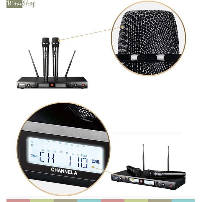 - Bộ thu làm việc ở tần số sóng 740-790MHz cung cấp 200 kênh tùy chọn. Có thể nhận đc các loại micro sử dụng sóng UHF.