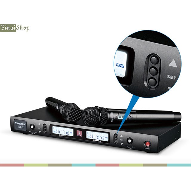 - Micro không dây Takstar W80 sử dụng kỹ thuật khóa tần số D-PLL RF cho tần số chính xác và hiệu suất ổn định.